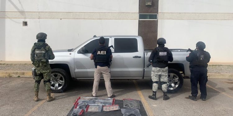 En el Operativo Conjunto que se realizan en el marco de la coordinación interinstitucional para reforzar la seguridad en los municipios de la Sierra de Chihuahua, se localizó una pick up en cuyo interior había armas de fuego, municiones y equipo táctico.
