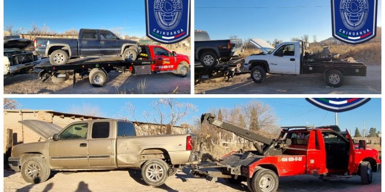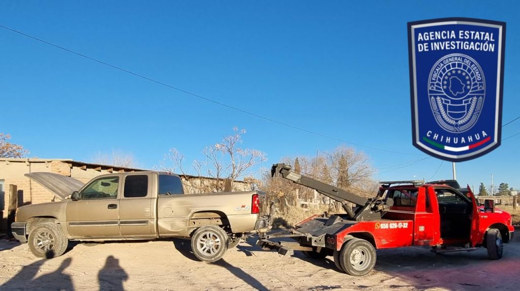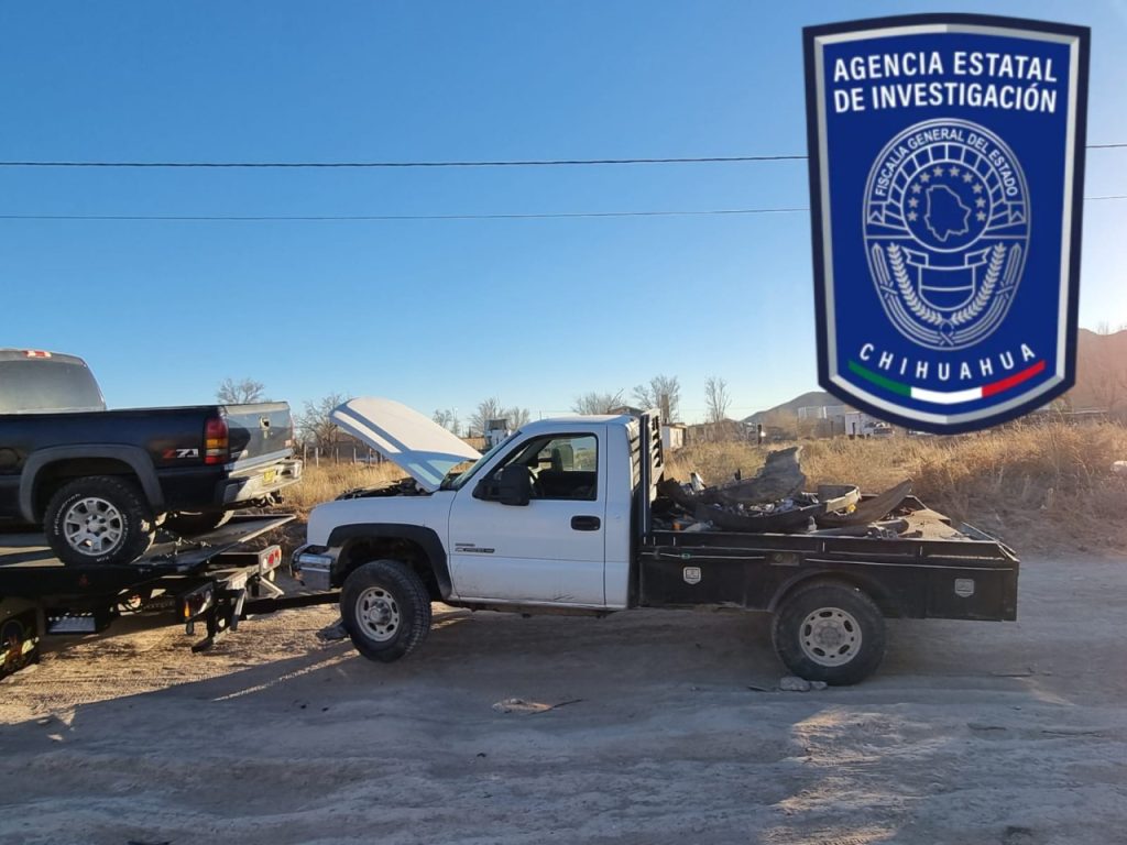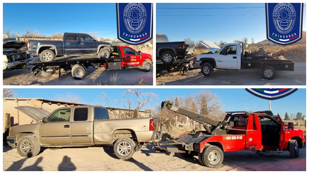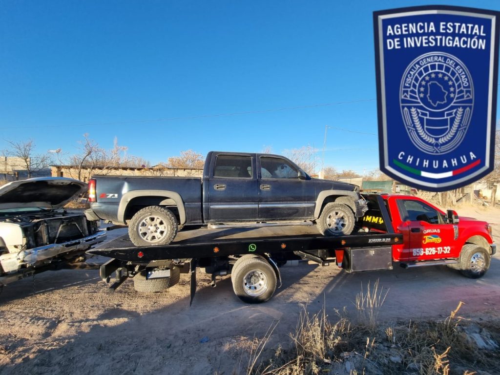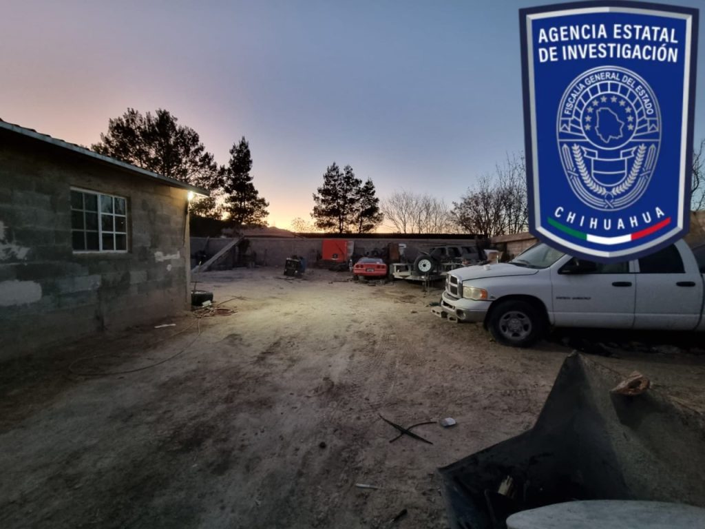 Elementos de la Agencia Estatal de Investigación (AEI), adscritos a la Fiscalía de Distrito Zona Norte, cumplimentaron órdenes de cateo en dos inmuebles del poblado de Samalayuca, en donde aseguraron tres vehículos con reporte de robo en El Paso, Texas.