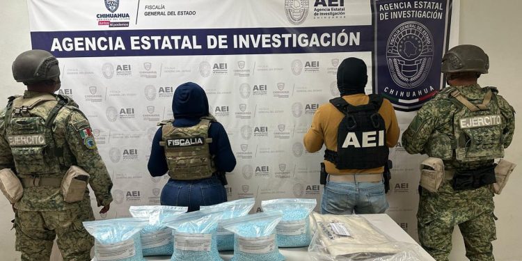 Elementos de la Agencia Estatal de Investigación y del Ejército Mexicano, aseguraron un vehículo en cuyo interior se localizaron mas de 16 kilogramos de pastillas de fentanilo, en Ciudad Juárez, Chihuahua.