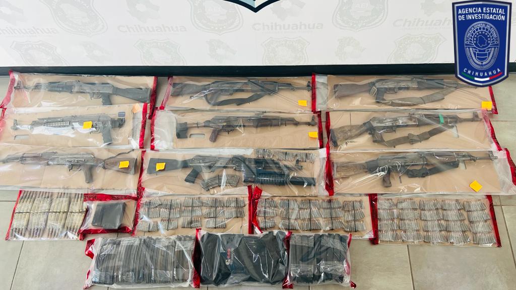 La Fiscalía General del Estado reporta el aseguramiento de nueve armas largas tipo fusil, cientos de cartuchos útiles y diversos cargadores, que fueron localizados en un vehículo que cuenta con reporte de robo, el cual se encontró durante los recorridos del Operativo Conjunto que se desarrolla en la región de Urique.