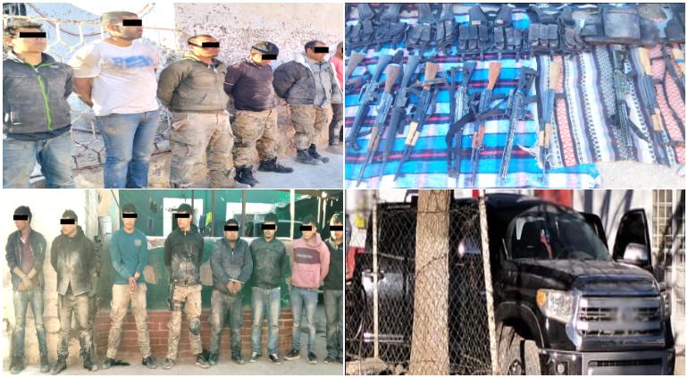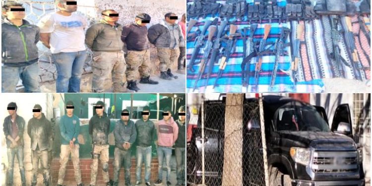 El Ejército Mexicano y la Guardia Nacional arrestaron a 16 presuntos sicarios tras el enfrentamiento en el municipio de Matamoros, en la comunidad de Ciénega de Ceniceros, con un arsenal de armas largas y tres vehículos, uno blindado.