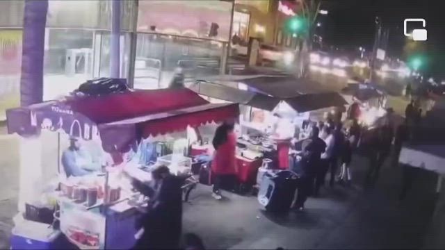Una cámara de vigilancia captó el momento en el que se registró la explosión en un puesto ambulante de tacos en Tijuana, Baja California; dos taqueros heridos