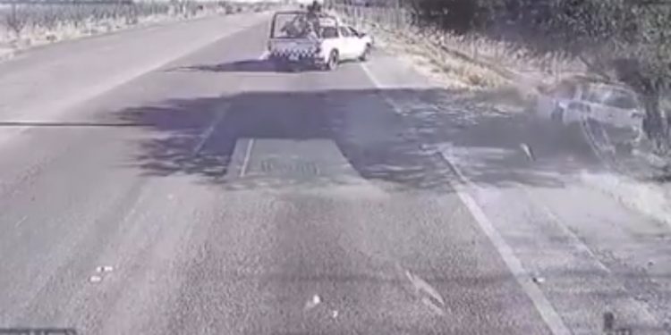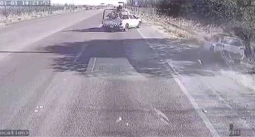 Fue a las 14:21 horas del domingo 1 de enero, según marca el video de seguridad de un trasporte de carga, cuando una camioneta que circulaba a baja velocidad, se acerca a la salida del tramo carretero y es obligada a detener su marcha a punta de balazos y aún asi, al menos cuatro agentes de la Guardia Nacional continúan disparando hasta acribillarlos.