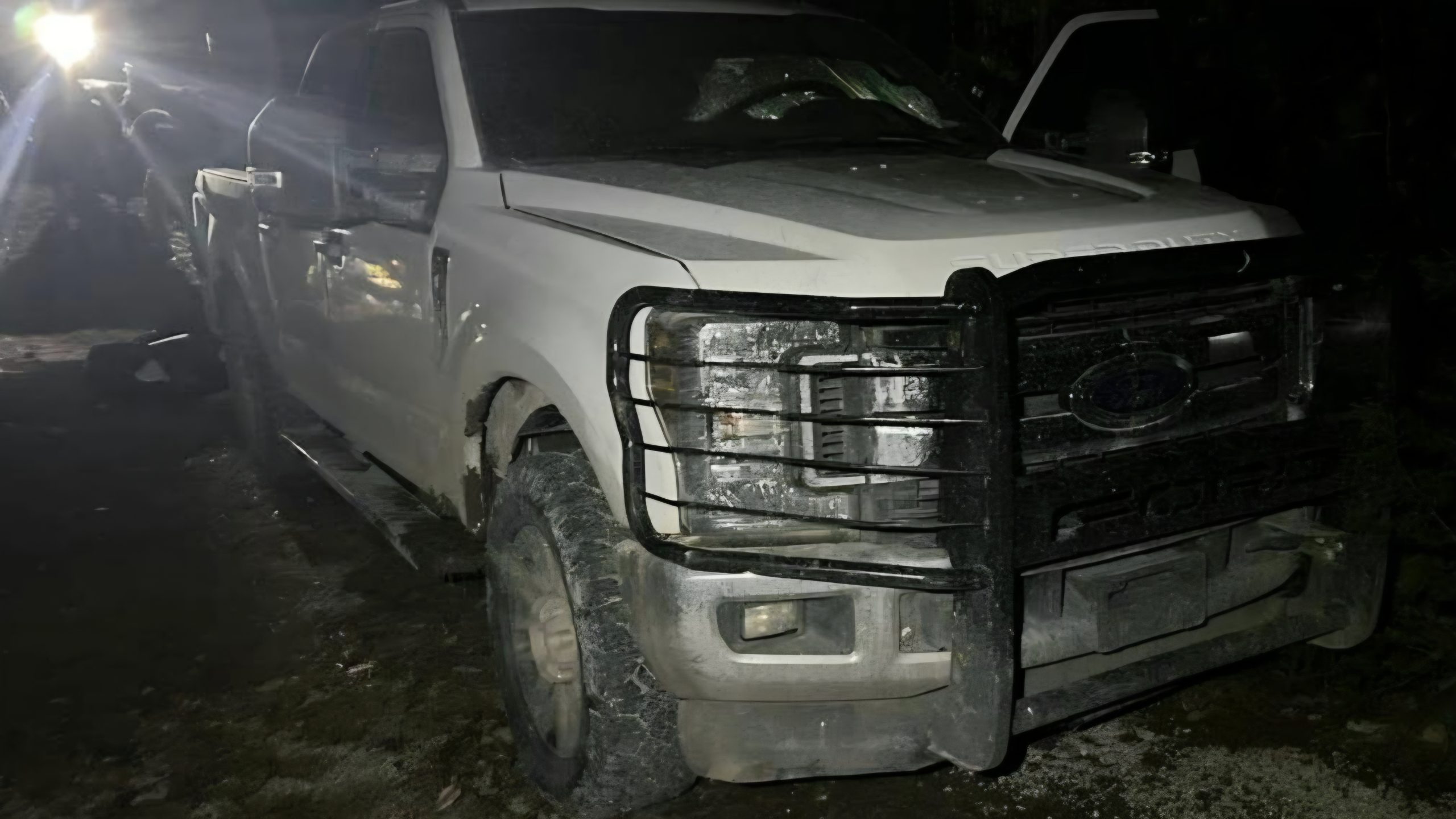 • 01 Pick up marca Ford, línea Super Duty, de color blanco, modelo reciente con blindaje artesanal.