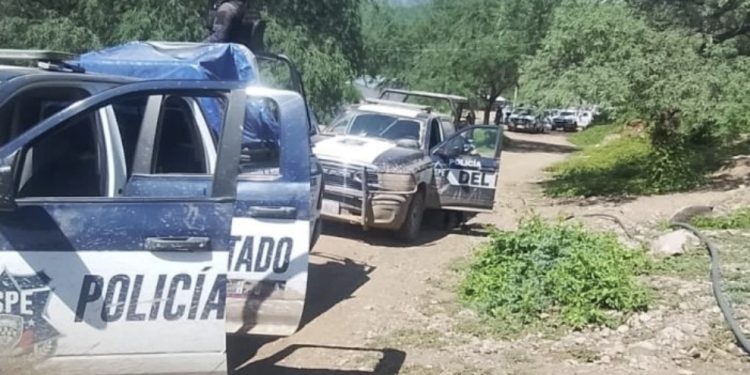 En ese lugar se tiene a la vista cuatro unidades de Seguridad Pública Municipal con múltiples daños por proyectiles de arma de fuego, sin que se reportaran elementos de la corporación heridos o fallecidos.