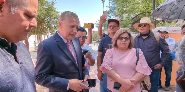 Enrique Serrano Escobar, exalcalde de Ciudad Juárez por el PRI, y excandidato a gobernador del Estado, también por el tricolor, fue visto esta mañana atendiendo a manifestantes en Chihuahua, en representación de Gobierno del Estado.