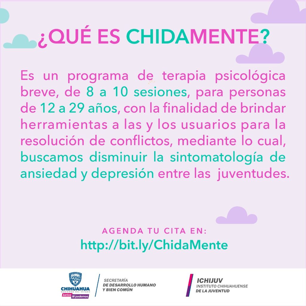 Con la finalidad de vigilar la salud mental de las juventudes de Chihuahua, el Gobierno del Estado a través del Instituto Chihuahuense de la Juventud (ICHIJUV), pone a disposición el programa Chidamente para atender casos de ansiedad y depresión.