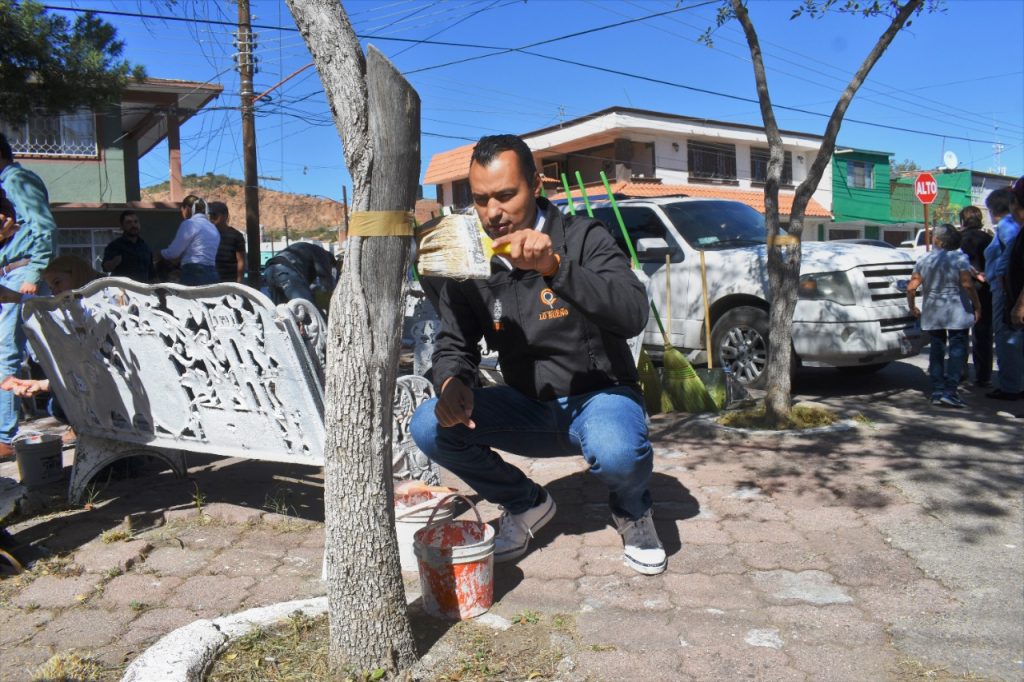 Este viernes tocó turno a los vecinos de la colonia Talleres recibir los beneficios del programa Presidente en Movimiento, encabezado por el alcalde César Peña Valles, quien dirigió a su equipo de trabajo en la limpieza, rescate de bancas, encalado de arbolado y entrega de lentes de lectura y adaptados entre la población que solicitó el apoyo gratuito.