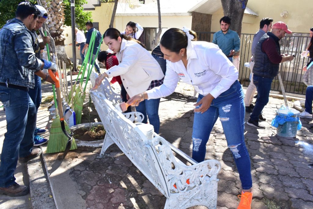 Desarrollo Urbano y Ecología encaló y reforestó las áreas verdes de la plaza, labor que incluyó las acciones de limpieza de Servicios Públicos con apoyo de personal de las diferentes direcciones que integran la Presidencia Municipal en Parral.