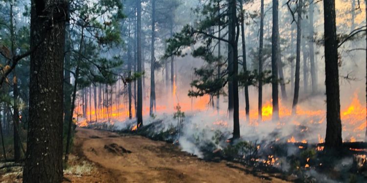De acuerdo con reportes de la Comisión Nacional Forestal (Conafor), más de 120 personas hacen frente a este siniestro, entre personal de brigadas rurales, estatales, municipales, elementos del Ejército Mexicano y voluntarios.