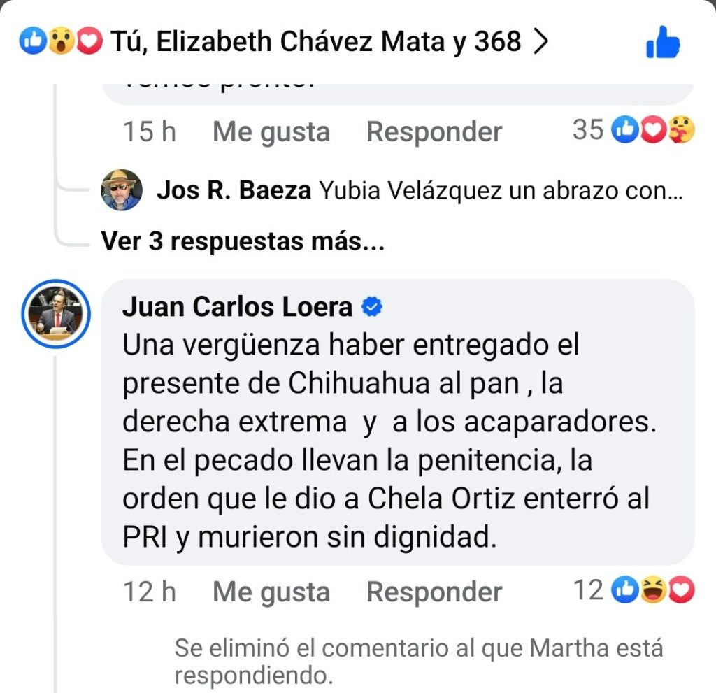 En los comentarios, hasta Juan Carlos Loera, senador de Morena, culpó a la hoy diputada federal, Graciela Ortiz, de haber entregado el estado de Chihuahua al PAN.
