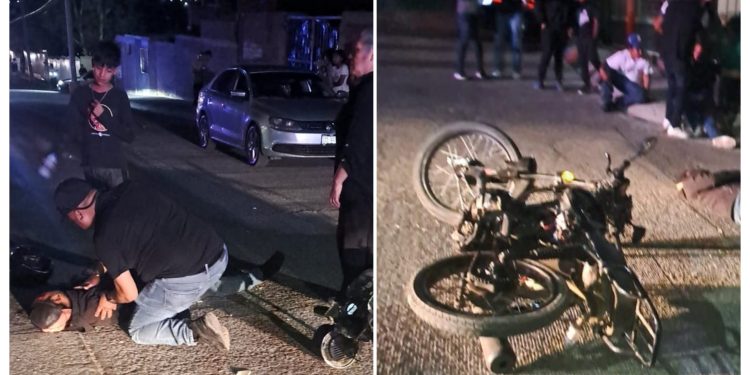 Apenas pasados los primeros nueve minutos de las 9 de la noche de ayer martes, se registró un choque fuga con lesionado en el cruce de la avenida Progreso y calle De La Gloria, en el que el conductor de una motocicleta negra Italika modelo 2025, identificado como Ángel Aarón Flores, no se percató de la proximidad de la camioneta y se impactó de frente contra ella.