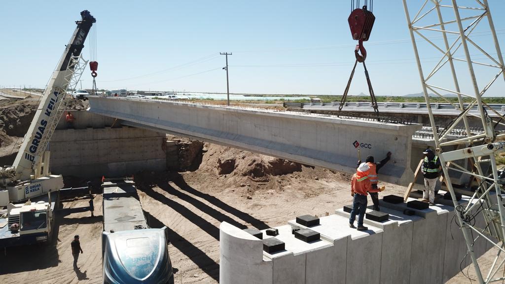 Durante el fin de semana se terminarán de colocar las 14 trabes gigantes que componen la estructura_Contará además con una guarnición con parapeto metálico en ambos lados, tendrá un ancho total de 11.80 metros, con 2 claros de 33 metros cada uno. Se contemplan accesos de entrada y salida de 35 metros de longitud cada uno, pavimentado a base de carpeta asfáltica e incluye señalamientos en horizontal y vertical, que son necesarios para su correcta operación.