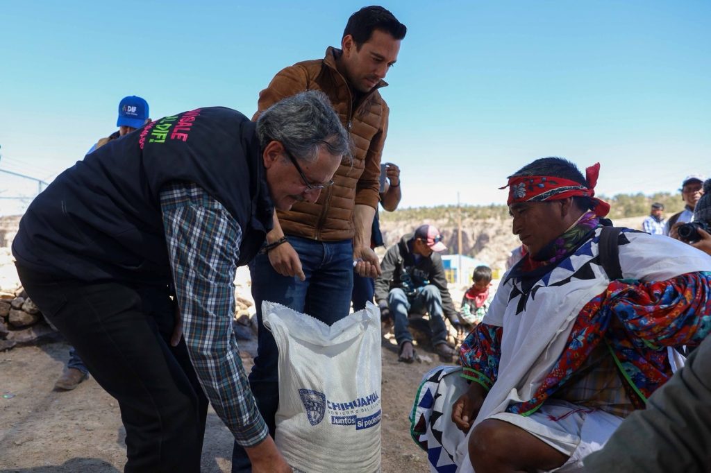 En la comunidad de Narárachi, municipio de Carichí, el Gobierno del Estado distribuyó a 1,300 familias más de 500 cobijas y 96 toneladas de granos, en el marco de la segunda etapa de la entrega de apoyos como parte de la estrategia integral contra la sequía.