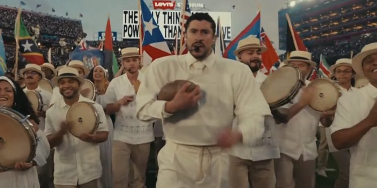 Bad Bunny contrinuó con ‘Café con ron’ para luego dar un mensaje de unidad y paz en el que mencionó al grueso de países del continente americano, no sin antes cerrar con un «God Bless America» (Dios bendiga América) y uno de sus más grandes éxitos, DTMF.