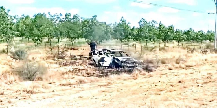 El incidente ocurrió sobre la carretera Parral-Jiménez, donde súbitamente comenzaron a escucharse disparos y ráfagas contra de un automóvil que circulaba en el lugar, el cual fue posteriormente calcinado en el acto.