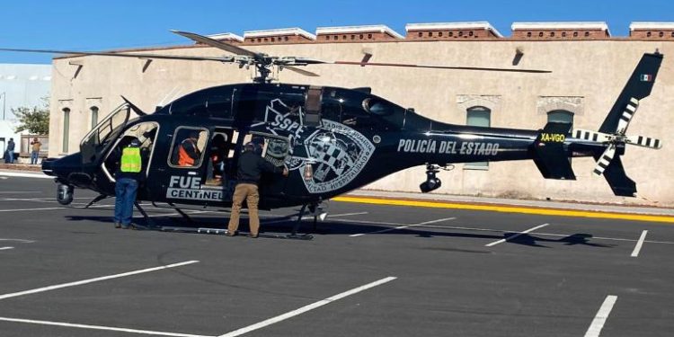 La aeronave Águila 5 de la Fuerza Centinela de la Secretaría de Seguridad Pública del Estado (SSPE), aterrizó en el estacionamiento del Museo Casa Redonda en Chihuahua, donde ya la esperaban paramédicos de URGE para llevar al agente baleado al Hospital Central.