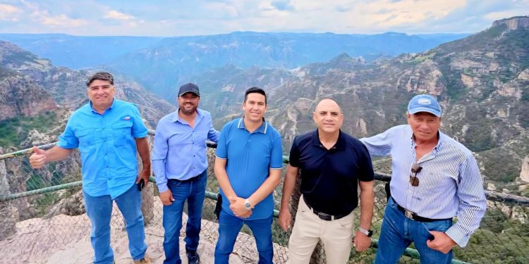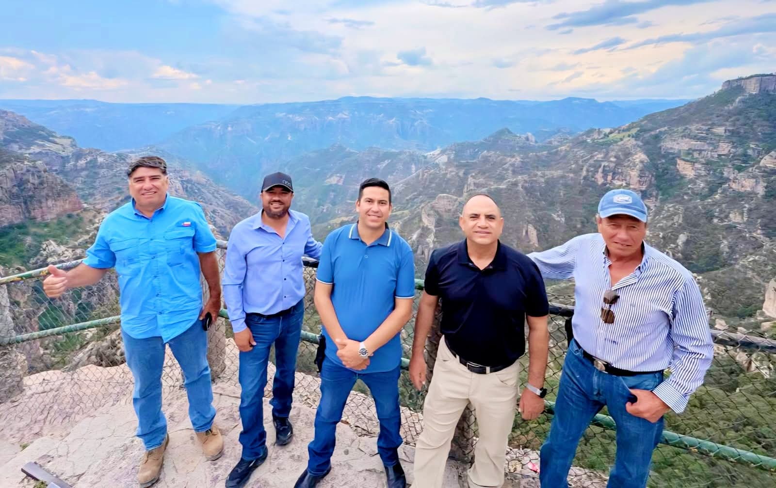 El legislador estuvo acompañado por Renato de la Rocha, secretario del ejido Redondeados; Domingo Vargas, presidente de la Unión de Silvicultores; y Ángel de la Rocha, empresario forestal. En el encuentro, intercambiaron experiencias sobre sostenibilidad y desarrollo, con el paisaje de las Barrancas del Cobre como escenario.