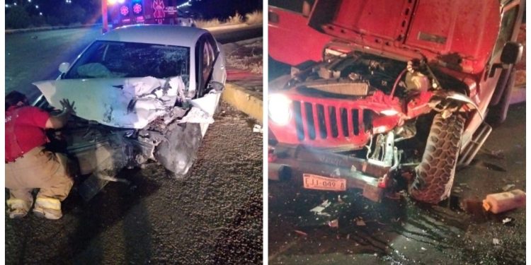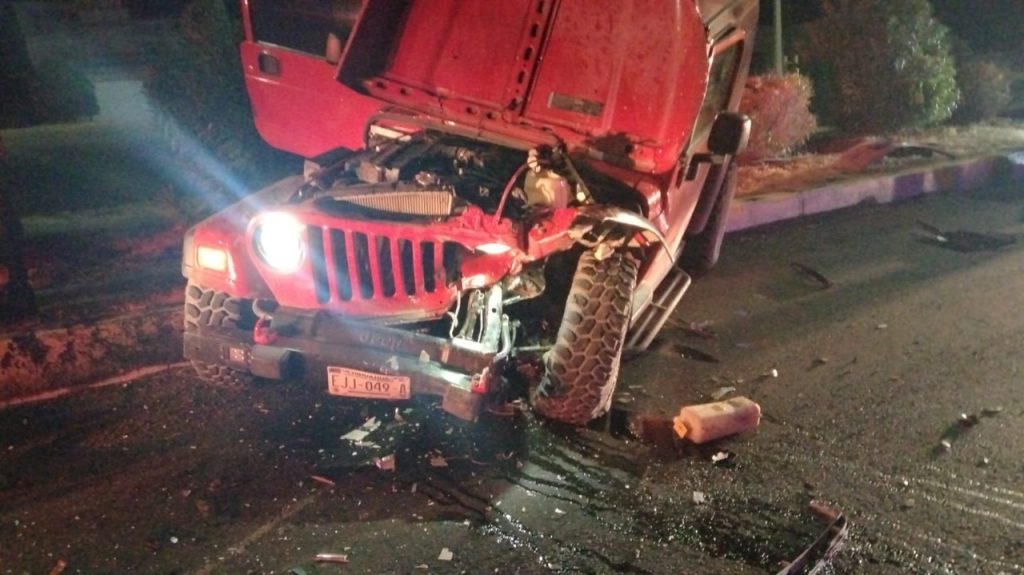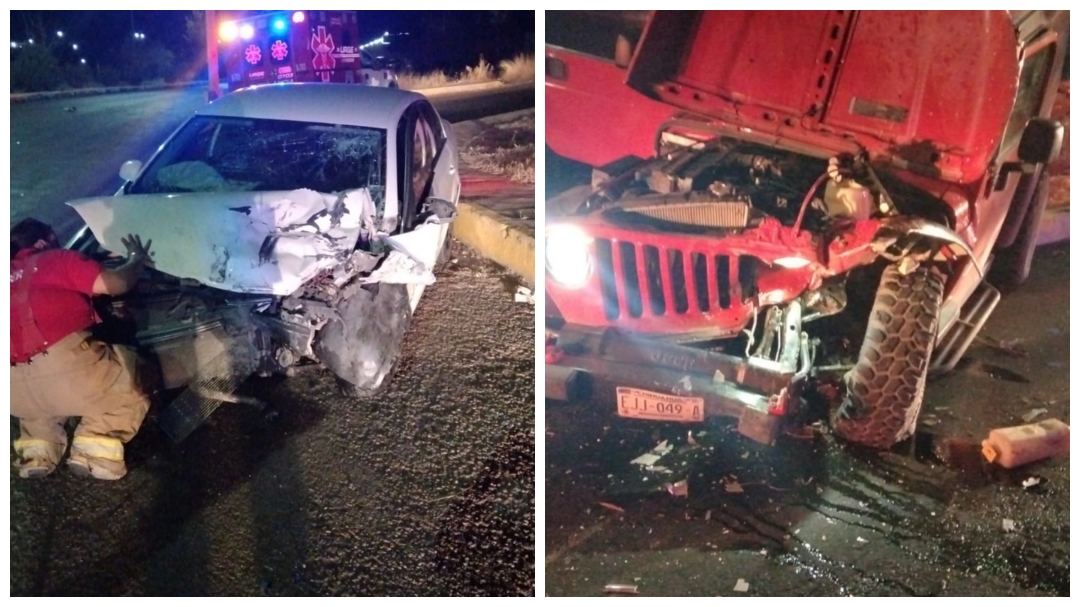 La noche de este viernes, en el perimetral a la altura del Fraccionamiento Fovisste Las Fuentes, un Volkswagen Bora de color blanco que era conducido por Pedro H.N. de 19 años, chocó de manera frontal contra un Jeep Wrangler que manejaba Jesenia R.R. de 20 años.