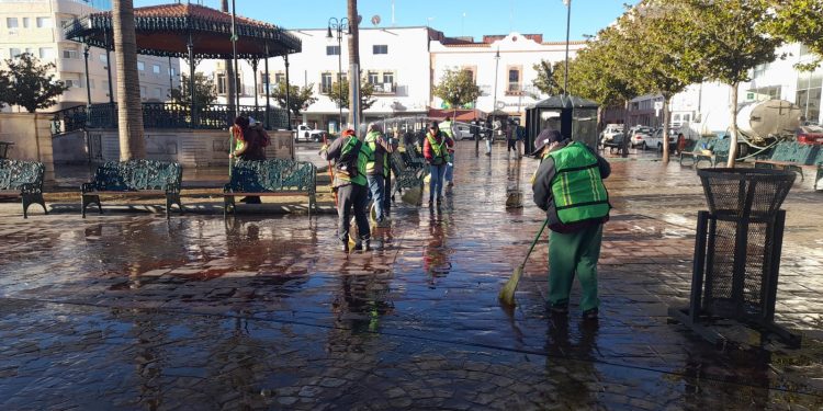 Brinda Servicios Públicos exhaustiva limpieza a la Plaza Principal