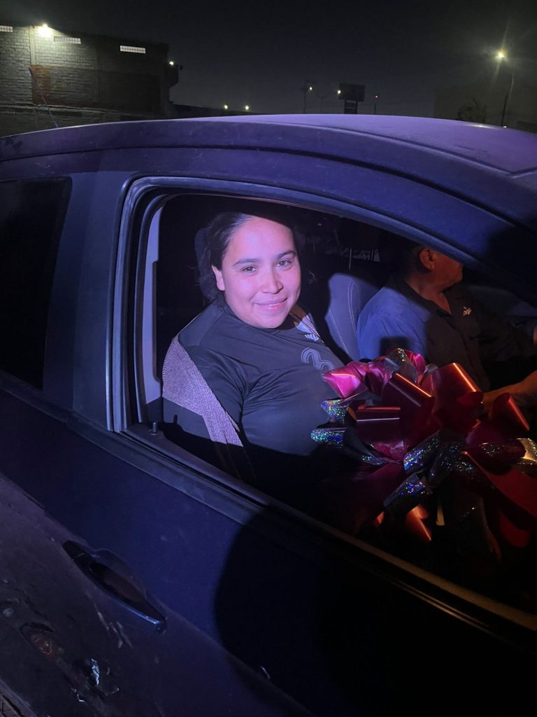 Fue el mismo Otto Valles Medina y su madre, la señora Imelda Medina de Valles, los primeros en felicitar a la ganadora, para posteriormente proceder a entregarle las llaves del vehículo, en el que salió del evento, después de haber llegado caminando desde su domicilio en la colonia El Quijote.