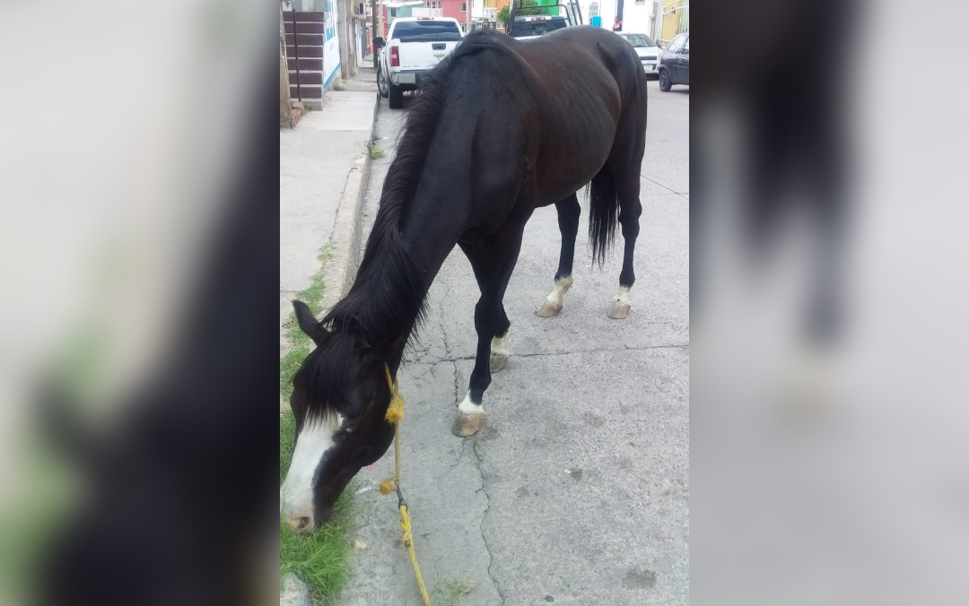 Al medio día de este domingo vecinos de la colonia el Potrero reportaron al 9-1-1 un caballo deambulando solo por calles de la colonia el Potrero, el cual se atravesaba a los vehículos, motivo por el que fue puesto a resguardo en el rastro Municipal.
