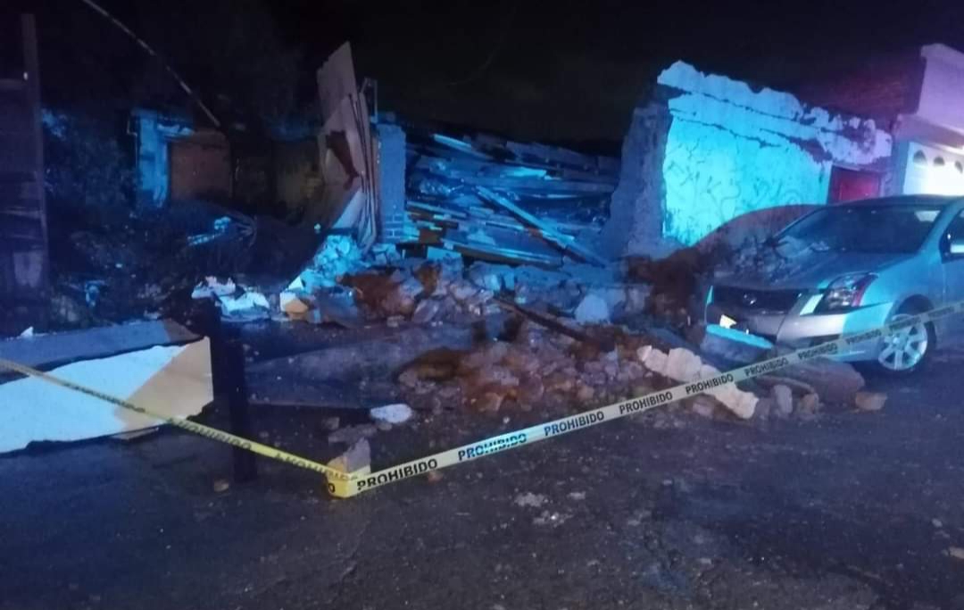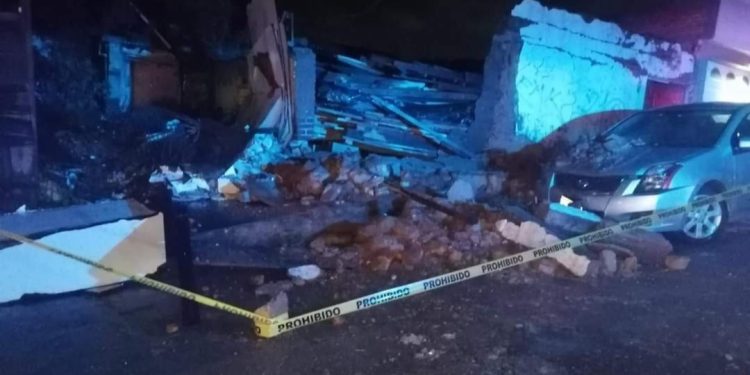 El derrumbe ocurrió en la calle Domingo Sarmiento hasta donde bomberos acudieron a atender el reporte sobre una barda de aproximadamente 3×3 metros, la cual se derrumbó y cayó sobre un Nissan Sentra, color gris, modelo 2010, ocasionando daños en cofre, defensa y vidrio frontal.