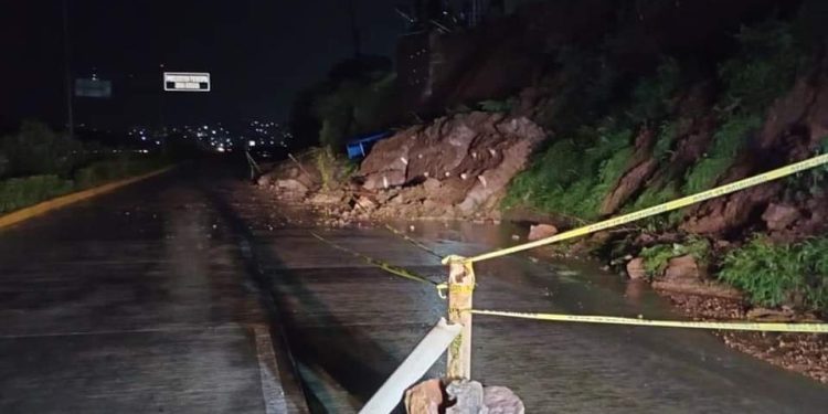 Debido a las constantes lluvias que se han estado presentando en la ciudad, un cerro, a la altura de la Puerta del Tiempo, obstruyendo el tránsito vehicular durante algunas horas, ya que la tierra y rocas cayeron sobre la carpeta asfáltica.