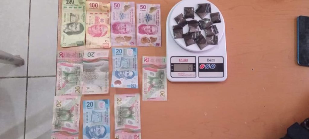 De igual forma estas acciones preventivas se aseguraron: 3 celulares, 2 mil 790 pesos en moneda nacional, 14 envoltorios con 10 gramos de narcóticos, 1 motocicleta y 2 camionetas.