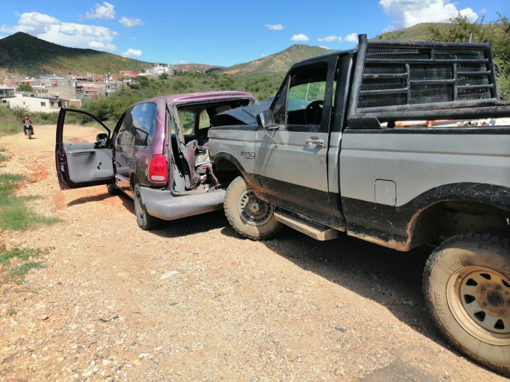 Una camioneta chocó por alcance a una vagoneta a la entrada de la colonia San José, accidente que dejó como saldo a dos personas lesionadas.