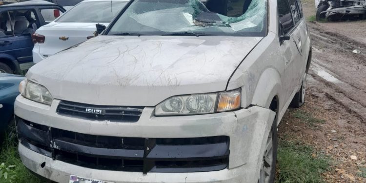 Aunque Fiscalía no lo menciona, en el caso de la Isuzu, es la misma unidad que volcó sobre la vía corta a Chihuahua el mismo día que se reportó como robada, ya que, a simple vista se aprecia el daño en el parabrisas frontal del lado del conductor, producto del accidente automovilístico.