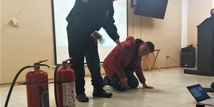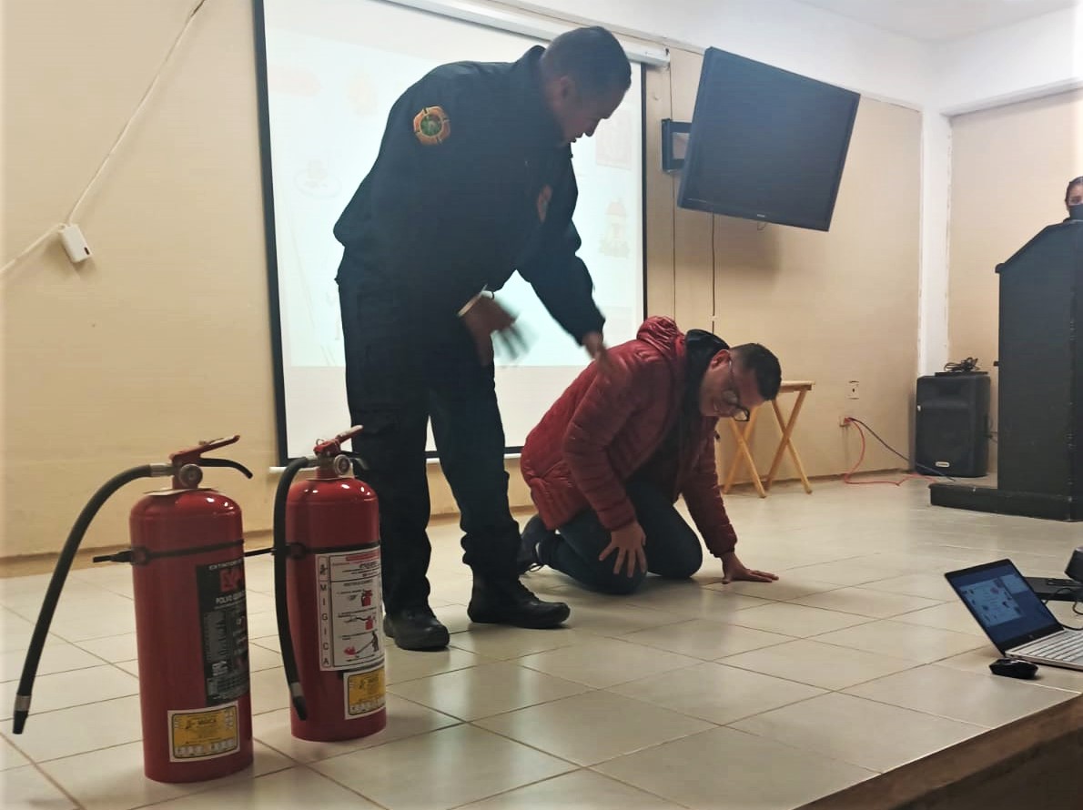 Los oficiales Gabriela Domínguez, Karla Muñoz y Noel Juárez fueron los encargados de impartir los temas abarcando la revisión de extintores y uso correcto, lo cual se complementó con la práctica de un simulacro de evacuación.