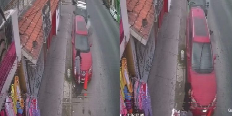 En segundos, la camioneta llega y se estampa contra una camioneta que está frente a la mujer, la cual avanza por el golpe, arrollando a la mujer y lanzándola lejos de donde se encontraba.