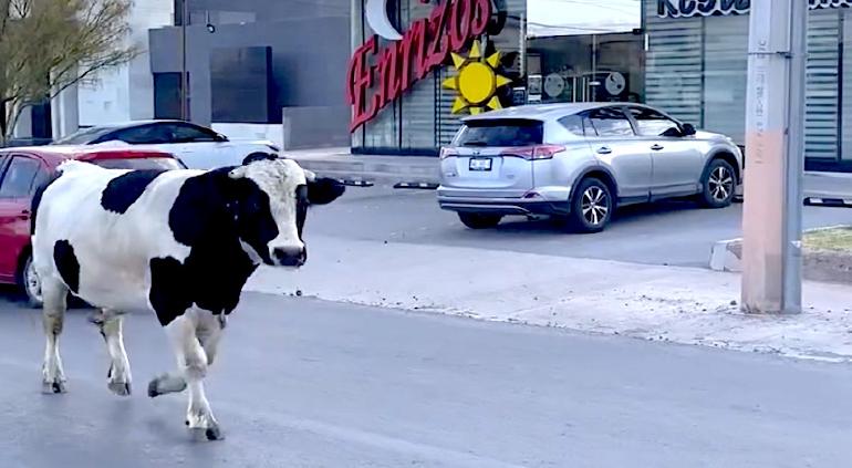 La mañana de este jueves, varios automovilistas que circulaban por la avenida Teófilo Borunda, a la altura del parque El Reliz en Chihuahua capital, se encontraron con una escena chusca y peligrosa a la vez: un grupo de vacas caminaba tranquilamente por la carretera, obligando a los conductores a frenar de manera abrupta y realizar maniobras para esquivar a los animales.