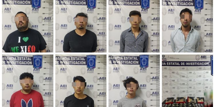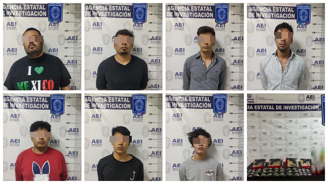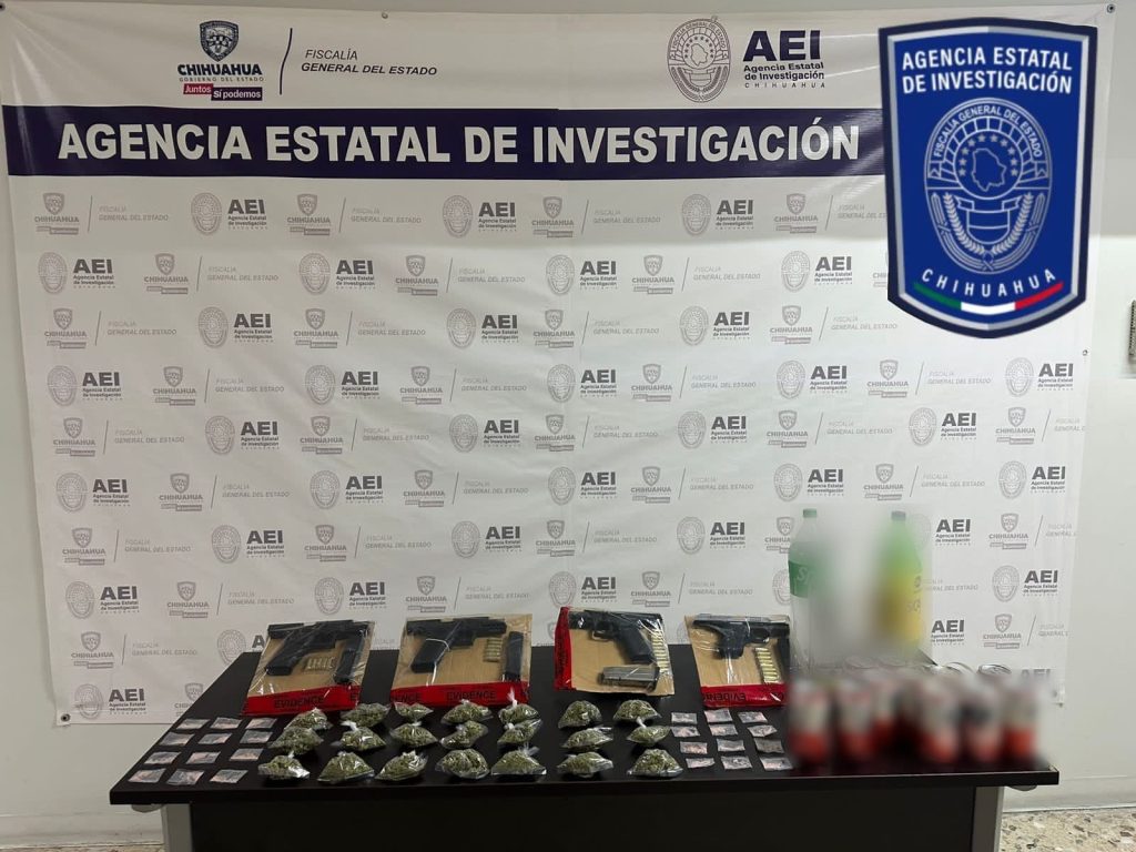 Elementos de la Coordinación Regional en la Zona Centro de la Agencia Estatal de Investigación, detuvieron en flagrancia a siete sujetos en posesión de armas y droga, en un domicilio ubicado en el fraccionamiento Real San Juan, de la ciudad de Chihuahua.