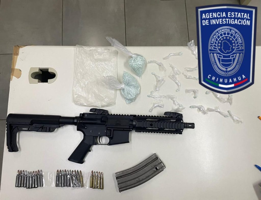 Al momento de su captura, se le aseguró un fusil calibre .223 mm, con su cargador abastecido con 25 cartuchos útiles, así como una bolsa con más de 2 mil pastillas de la droga conocida como fentanilo, dando un peso aproximado de 220 gramos.