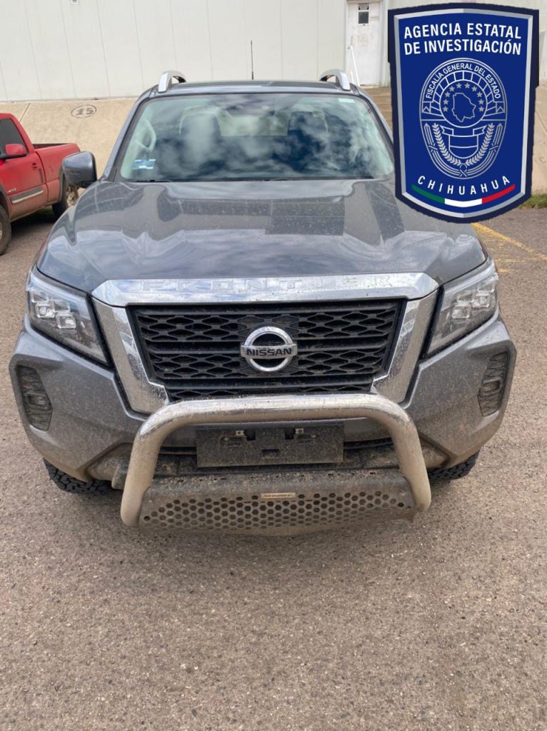 - Una pick up marca Nissan, línea Frontier, color gris, modelo 2021, con reporte de robo en la ciudad de Chihuahua, con fecha del 24 de junio de 2022.