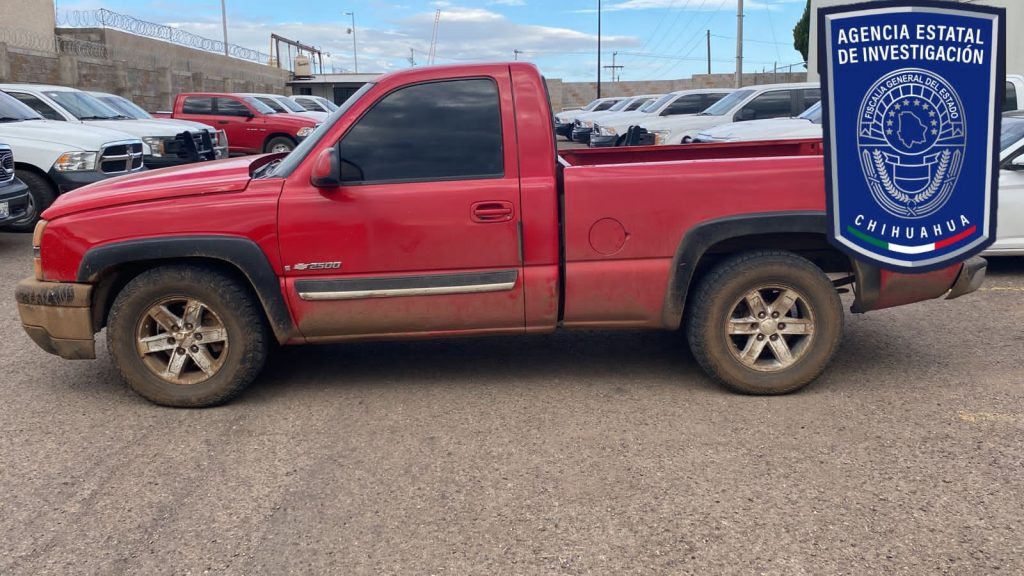 - Una pick up marca Chevrolet, color rojo, modelo 2007, con reporte de robo en la ciudad de Chihuahua, con fecha 31 de marzo de 2021.