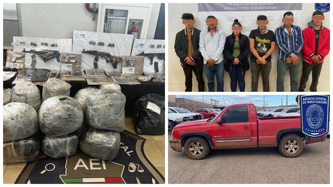En una rápida y efectiva movilización, elementos de la Agencia Estatal de Investigación (AEI) adscritos a la Fiscalía de Distrito Zona Sur, con apoyo del Ejército Mexicano, lograron en Guachochi la detención de seis personas a quienes se les aseguraron diversas drogas, armamento, vehículos robados, equipo táctico y de comunicación.
