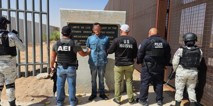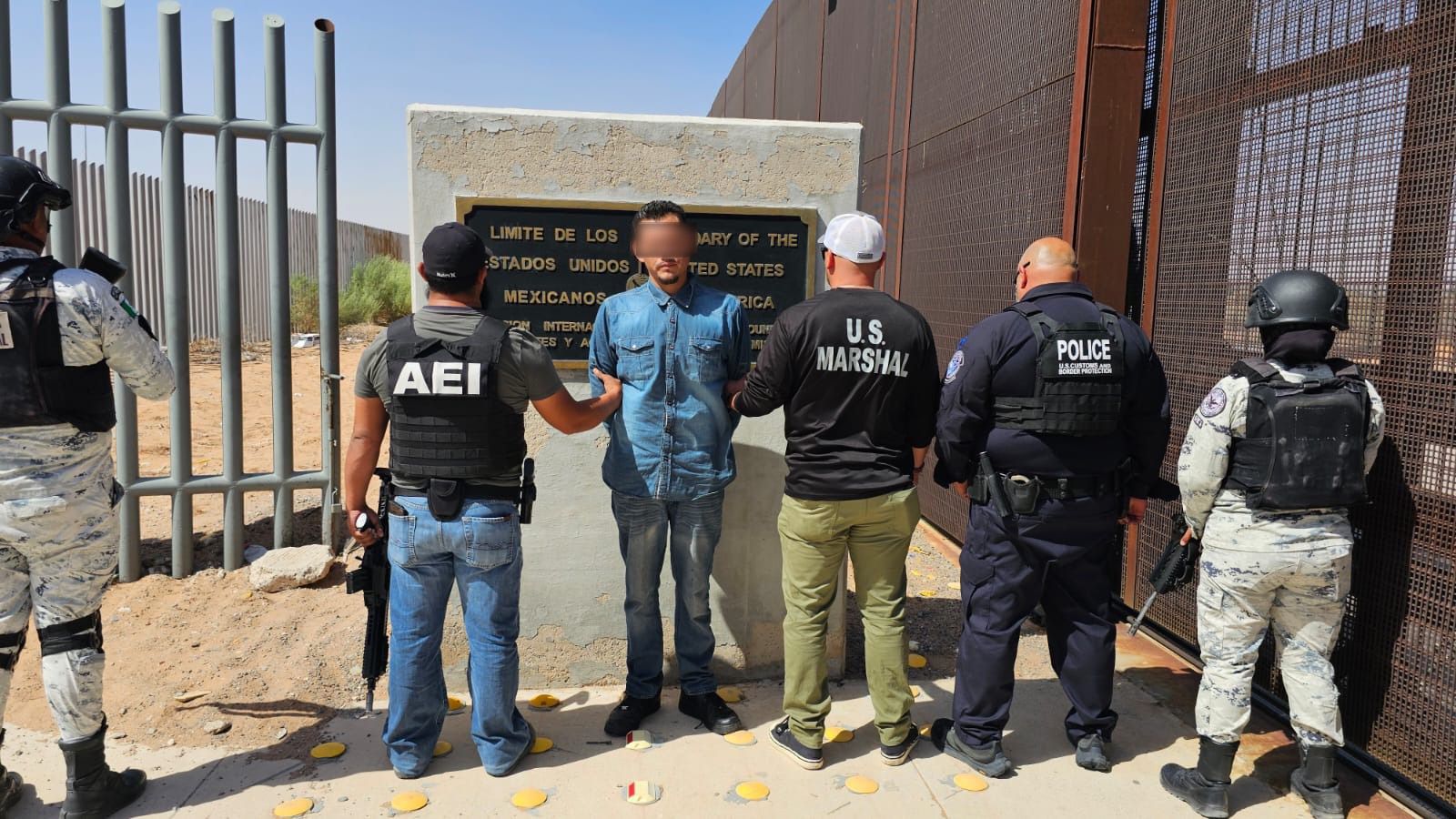 Posteriormente, lo trasladaron a Ciudad Juárez para ser entregado a la autoridad solicitante en las inmediaciones del puerto fronterizo San Jerónimo- Santa Teresa, lugar en donde arribó el personal en mención, contándose para la entrega con la participación de otras agencias como el Instituto Nacional de Migración, Guardia Nacional, así como diversos agentes federales U.S Marshall.