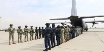 El R8, junto a los otros tres hombres que fueron detenidos, ingresaron a la aeronave de las fuerzas armadas para ser trasladados a una prisión.