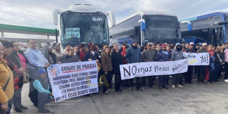 Alrededor de cien personas partieron esta mañana desde Parral hacia la capital del estado, Chihuahua, para protagonizar una manifestación en apoyo al ex gobernador César Duarte Jáquez.