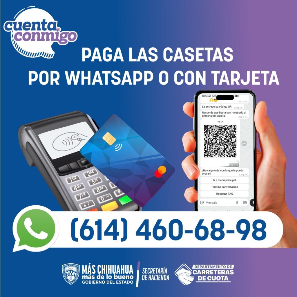 Todas las casetas del territorio estatal están acondicionadas para recibir la cuota mediante tarjeta, y recientemente se habilitó el prepago por WhatsApp en el (614) 460 68 98.