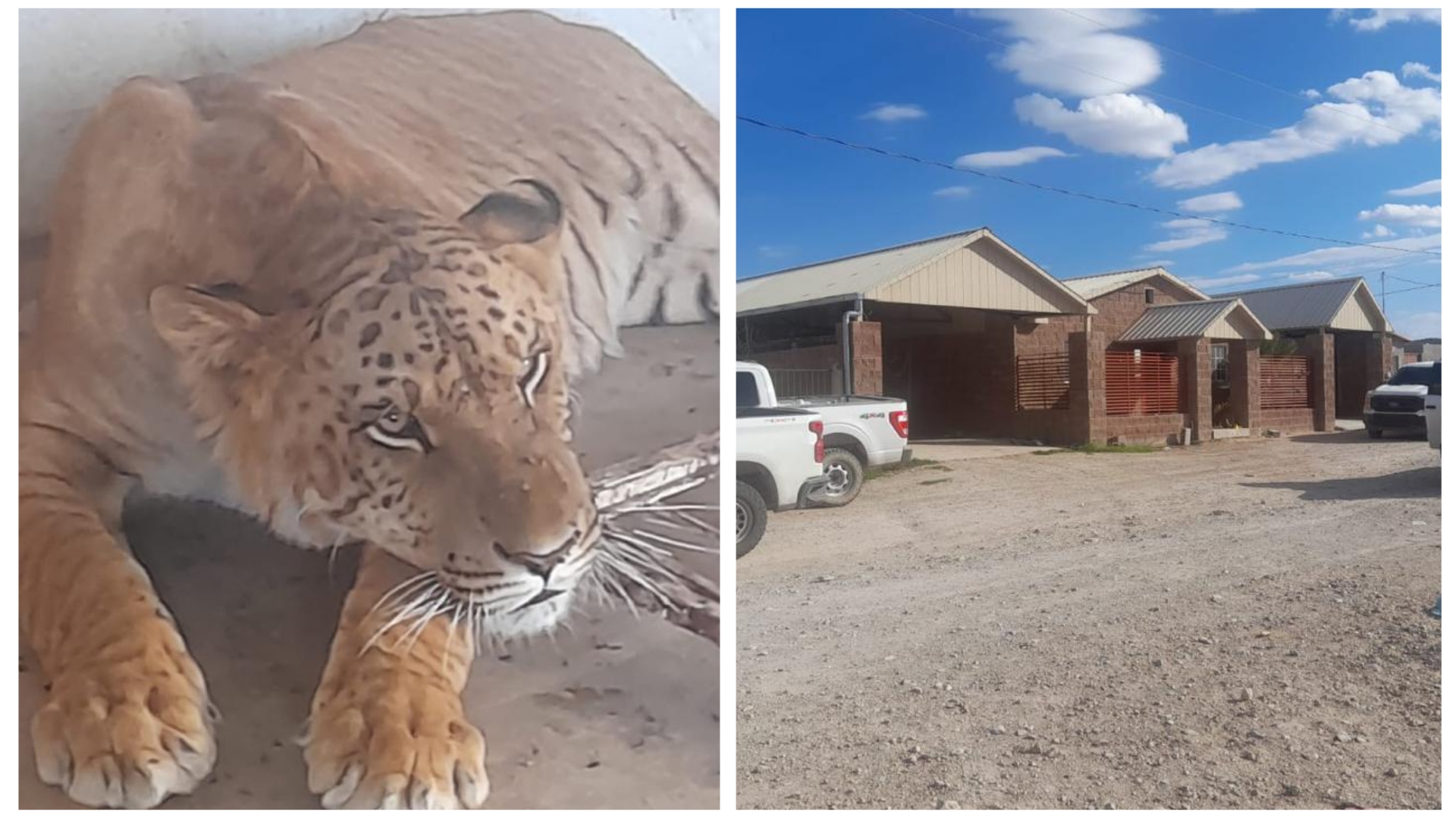 En seguimiento a las indagatorias en torno a hechos violentos registrados recientemente en el municipio de Coyame del Sotol, personal de investigación de la Fiscalía General del Estado, catearon tres inmuebles de ese poblado, en uno de los cuales localizaron un ligre.