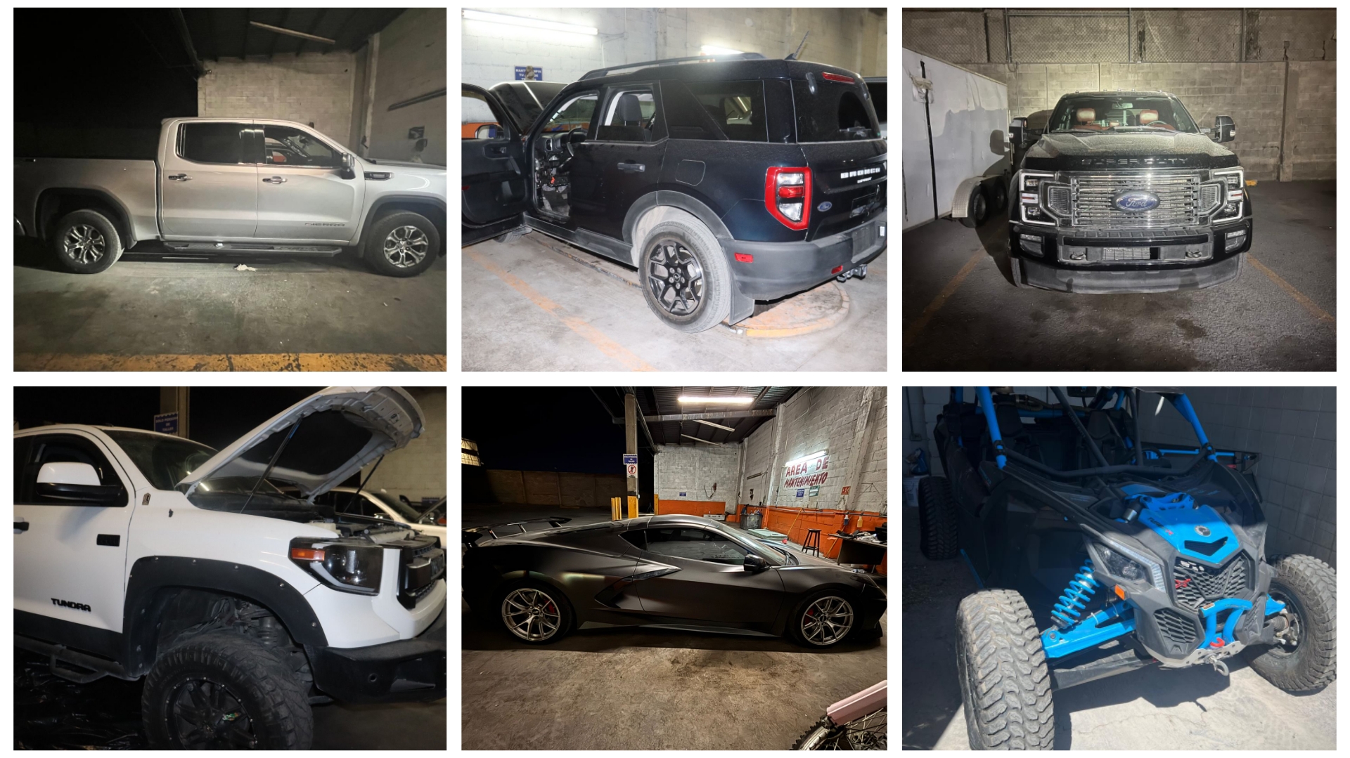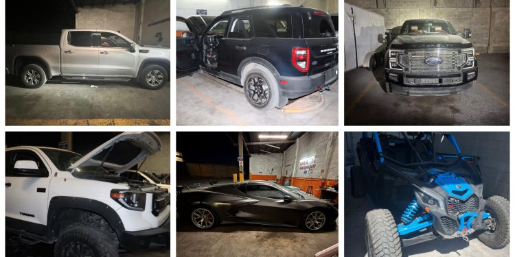En el predio, acondicionado como taller mecánico, se ubicaron nueve vehículos de diversas marcas, todos con reporte de robo, tanto de Ciudad Juárez como de Estados Unidos, siendo los siguientes:
