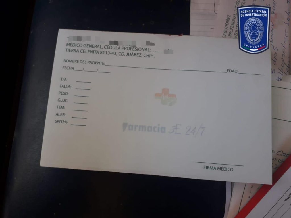 Agentes del Ministerio Público y de la Agencia Estatal de Investigación, adscritos a la Fiscalía de Distrito Zona Norte, cumplimentaron órdenes de cateo a dos establecimientos de las farmacias «3E», por los delitos usurpación de identidad, usurpación de profesiones, falsificación o alteración y uso indebido de documentos.