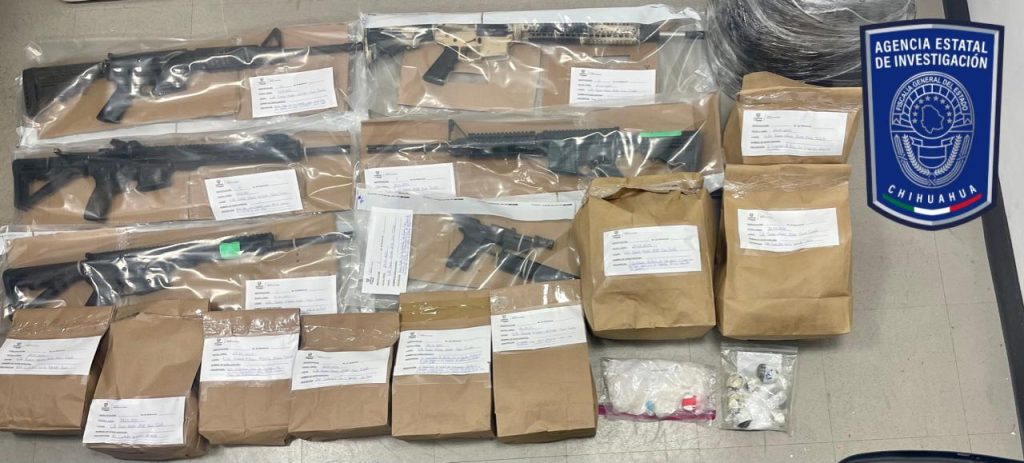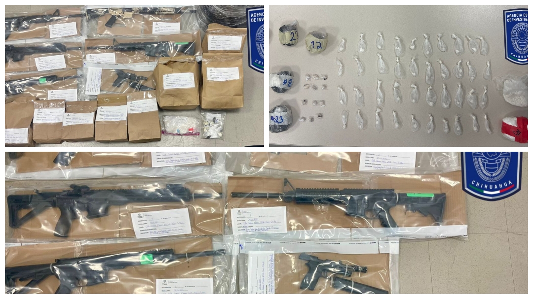 Mediante labores de investigación e inteligencia, agentes de la Unidad de Proyectos Especiales de la Fiscalía Especializada en Operaciones Estratégicas y la Agencia Estatal de Investigación, aseguraron diversas armas, droga (cristal, heroína y mariguana), equipo táctico y celulares, en una vivienda del Fraccionamiento Toledo, en la ciudad de Chihuahua.