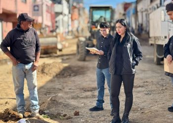 La síndica Municipal, Dalila Villalobos, realizó una visita de inspección a la obra de pavimentación con...