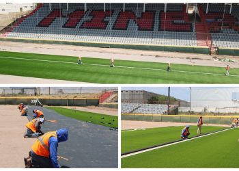 Leer másnstalarán más de 10 mil metros cuadrados de pasto sintético en el Gran Estadio Parral | FOTOSLa Secretaría de Comunicaciones y Obras Públicas (SCOP), dio inicio a la colocación del pasto sintético...