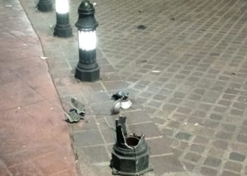 Un camión militar derribó un bolardo en la Plaza de la Identidad y lejos de detenerse...